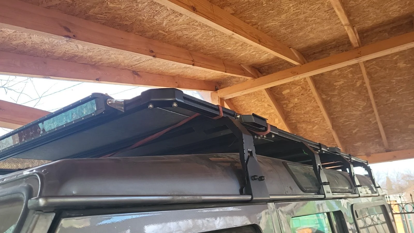Багажник розроблений спеціально для автомобіля Land Rover Defender, що дозволяє встановити його без втручання у конструкцію автомобіля – кріплення точно відповідають штатним отворам, забезпечуючи надійну фіксацію та зберігаючи цілісність кузова. Процес складання багажника простий і не потребує спеціальних інструментів, дозволяючи швидко підготувати автомобіль до поїздки.