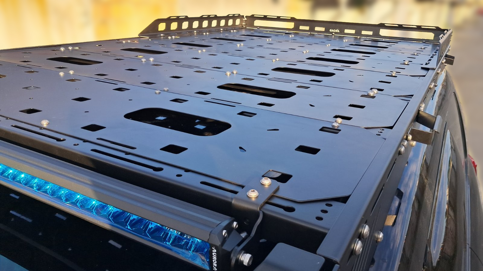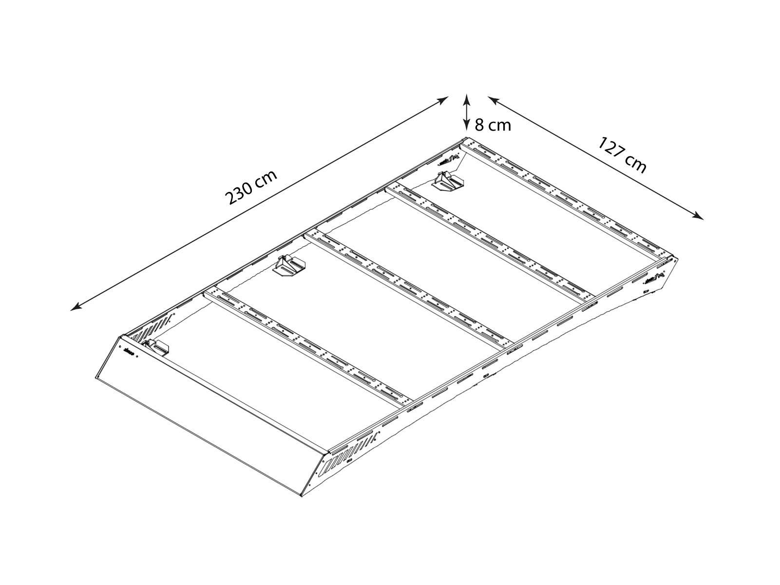 Багажник витримує динамічне навантаження до 150 кг та статичне навантаження до 300 кг, що робить його ідеальним для встановлення наметів та перевезення важких вантажів.