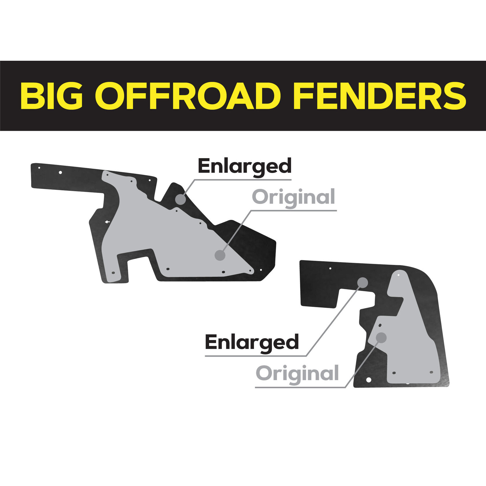 Повний комплект посиленого брудозахисту моторного відсіку для встановлення на передню вісь автомобіля. Площа посиленого брудозахисту значно більша за штатний, що дозволяє йому ефективно захищати не тільки моторний відсік, але й важливе електрообладнання, таке як генератор і стартер. Цей посилений брудозахист розроблений спеціально для експлуатації як у міських умовах, так і на найскладніших позашляхових трасах.