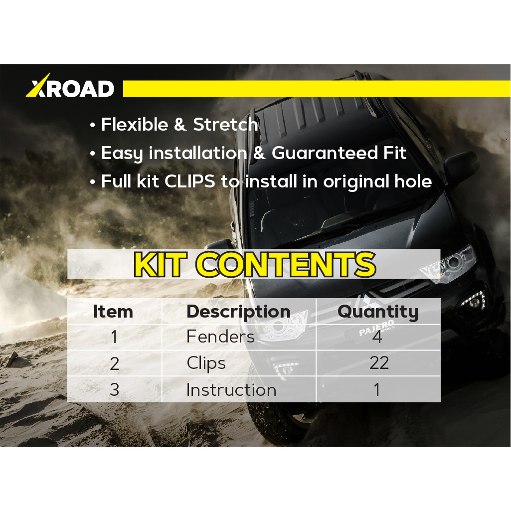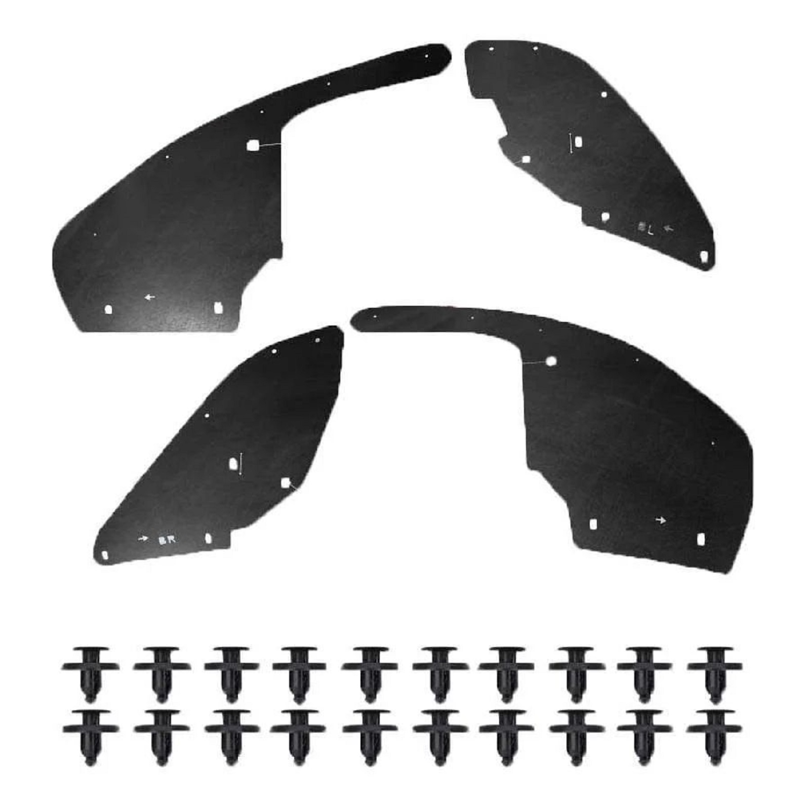 Склад комплекту: 4 посилених пильники для передніх колісних арок, монтажний набір кліпс, інструкція.