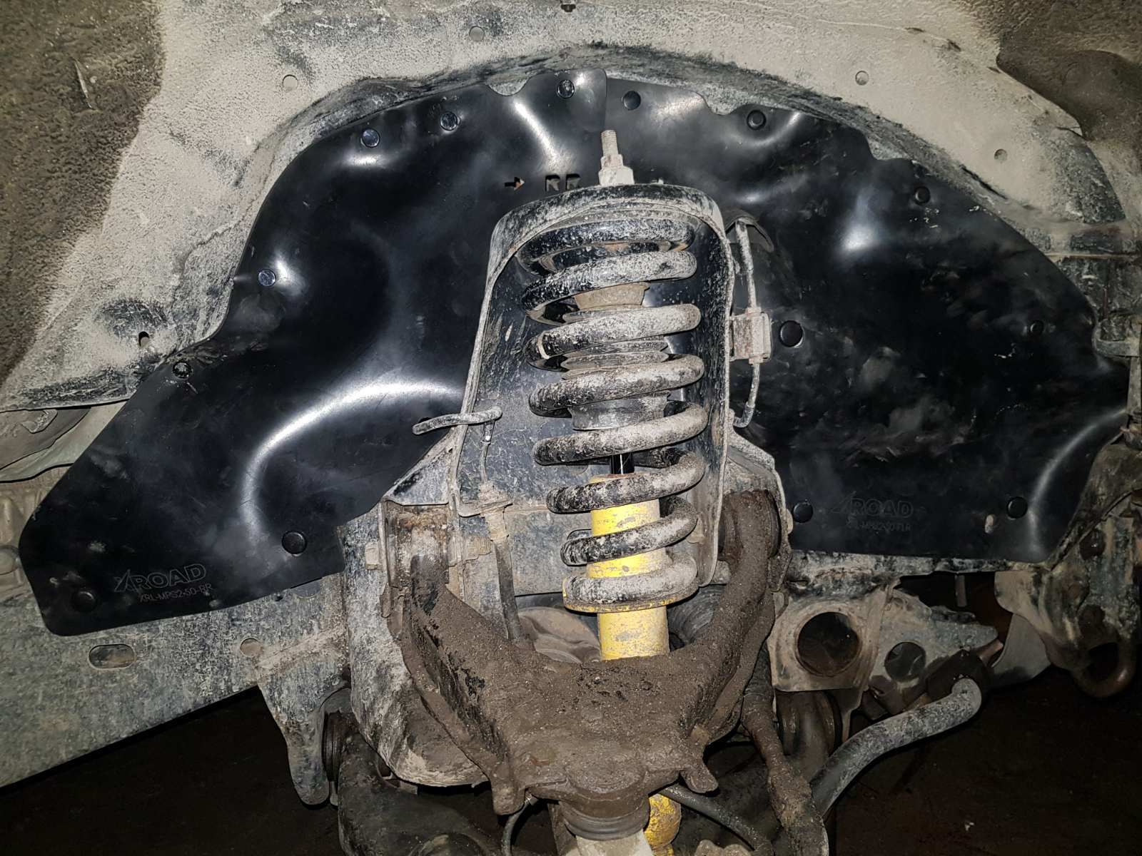 Повний комплект посиленого брудозахисту моторного відсіку для встановлення на передню вісь автомобіля. Площа посиленого брудозахисту значно більша за штатний, що дозволяє йому ефективно захищати не тільки моторний відсік, але й важливе електрообладнання, таке як генератор і стартер. Цей посилений брудозахист розроблений спеціально для експлуатації як у міських умовах, так і на найскладніших позашляхових трасах.