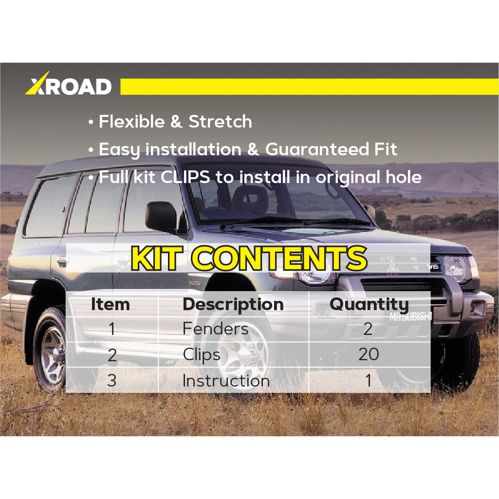 Склад комплекту: 2 посилених пильники для передніх колісних арок, монтажний набір кліпс, інструкція.