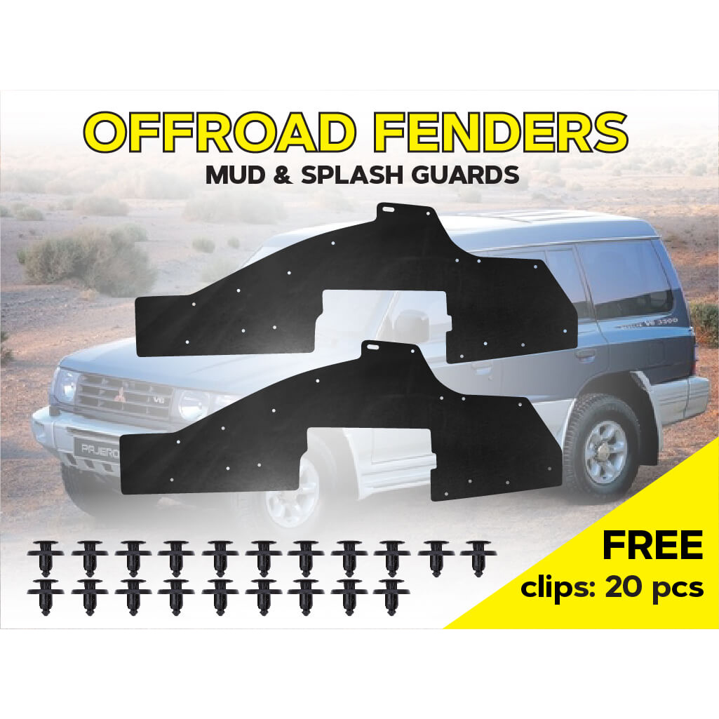 Повний комплект посиленого брудозахисту для встановлення на передню вісь автомобіля. Ефективно захищаэ не тільки моторний відсік, але й важливе електрообладнання від пилу, бруду, води, гілок, дрібних каменів та інших сторонніх елементів.