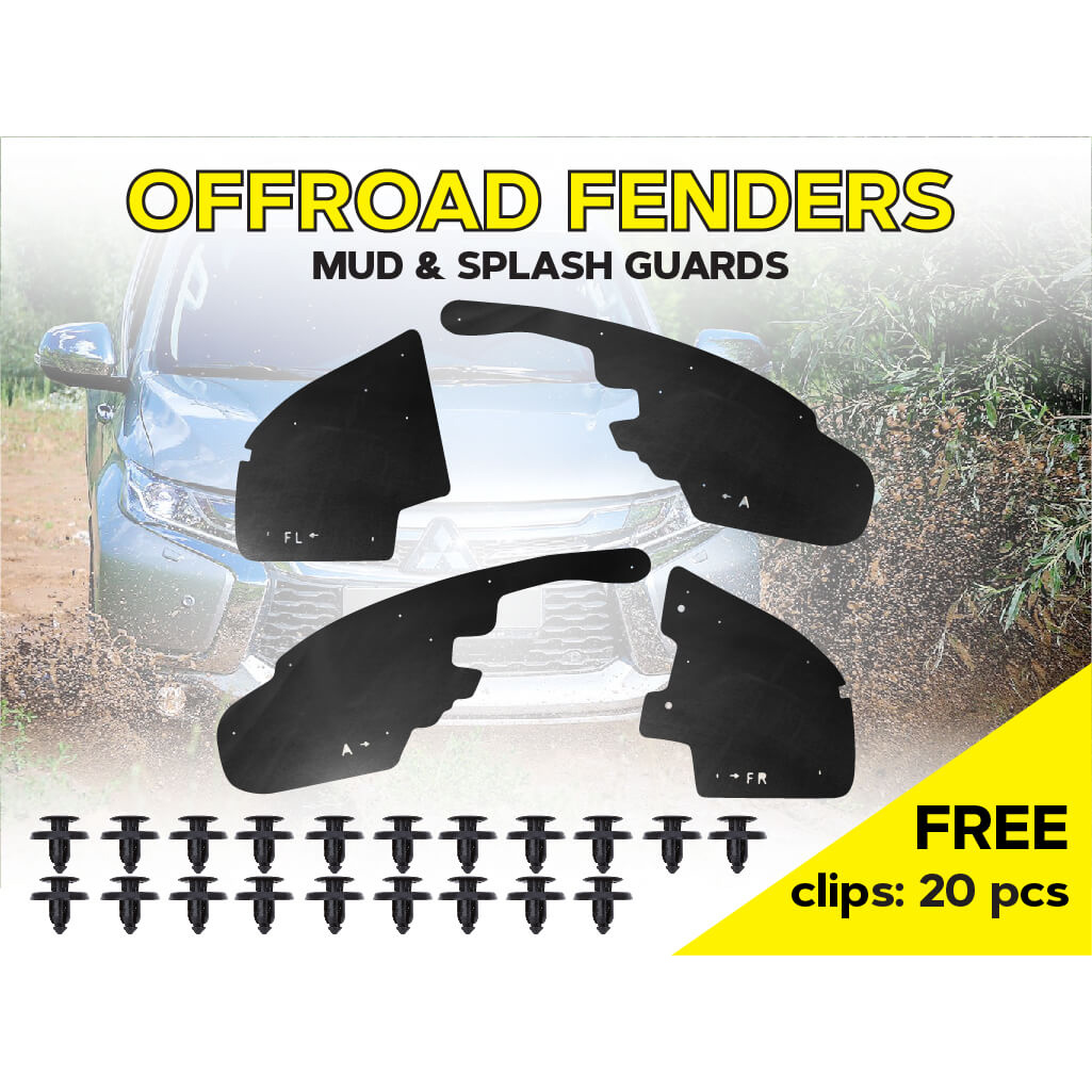 Склад комплекту: 4 посилених пильники для передніх колісних арок, монтажний набір кліпс, інструкція.