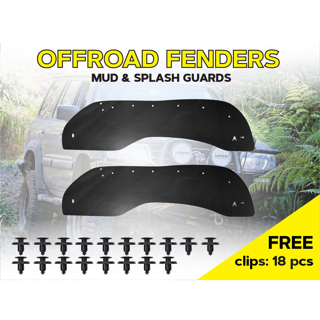 Повний комплект посиленого брудозахисту для встановлення на задню вісь автомобіля. Площа посиленого брудозахисту значно більша за штатний, що дозволяє йому ефективно захищати колісні арки між кузовом і рамою від пилу, бруду, гілок, дрібного каміння та інших сторонніх елементів. Це допомагає зберегти чистоту та цілісність ходової задньої вісі, уникнути корозії та зайвої ваги автомобіля. Цей посилений брудозахист розроблений спеціально для експлуатації як у міських умовах, так і на найскладніших позашляхових трасах.