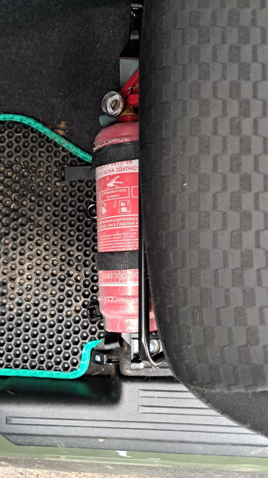 Вогнегасник у Suzuki Jimny тепер на зручному місці, поруч з водієм, його гарантовано не потрібно шукати «десь в багажнику» в екстреній ситуації. За потребою, доступ до вогнегасника займає секунди.