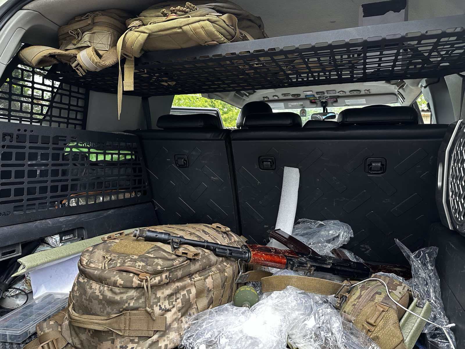 Конструкція полиці дозволяє кріпити необхідні речі до полиці не тільки зверху, а й знизу, тим самим забезпечуючи додаткове місце зберігання в багажнику. Розмір молле-вікон стандартний, що дозволяє кріпити типове армійське спорядження. Круглі отвори дозволяють кріпити гумові стропи, клепальні гайки та підходять для універсальних гумових кріплень QuickFist.