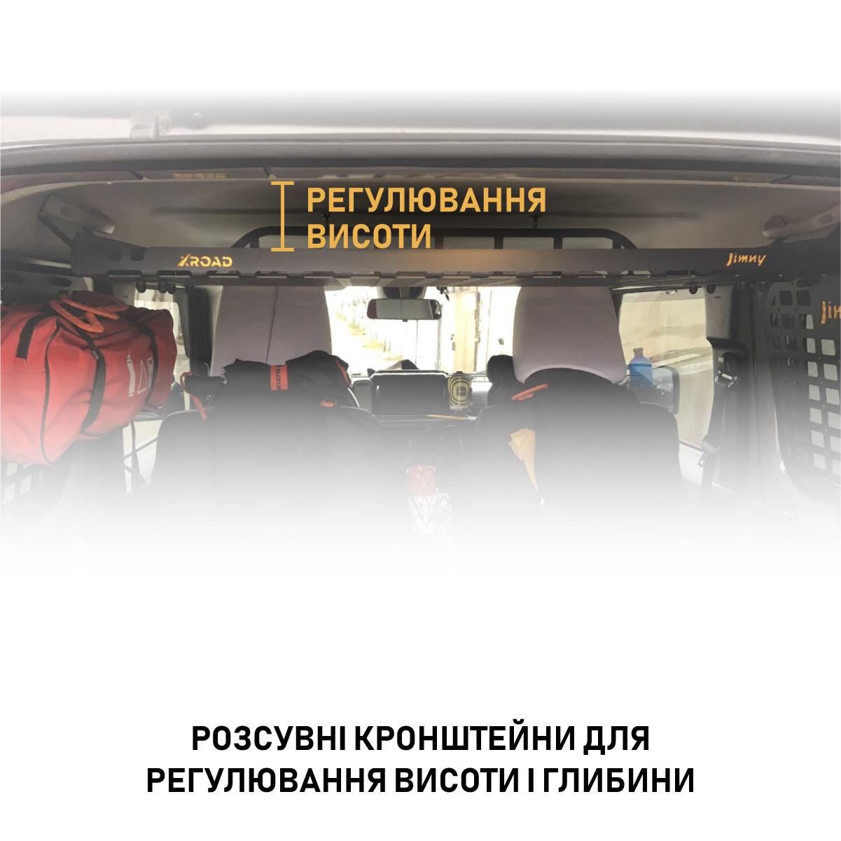 Полиця встановлюється під ручки третього ряду сидінь і не вимагає свердління деталей автомобіля, що забезпечує швидке та просте встановлення. Ви зможете встановити полицю самостійно без допомоги спеціалістів.