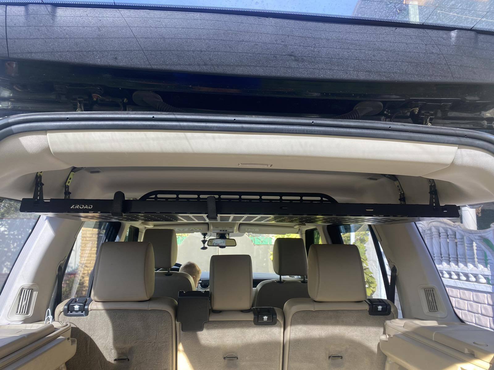 Полиця може встановлюватись на 5-ти та 7-місні версії автомобіля. У 7-місних транспортних засобах встановлення верхнього кронштейна повністю має plug-and-play. У 5-місній версії автомобіля необхідно встановити додаткову опору для ручки пасажира під стелею, яка доступна як оригінальна запчастина Land Rover з кодом ALU780100 або можна замовити у нас її аналог. Усі необхідні інструкції надаємо додатково.