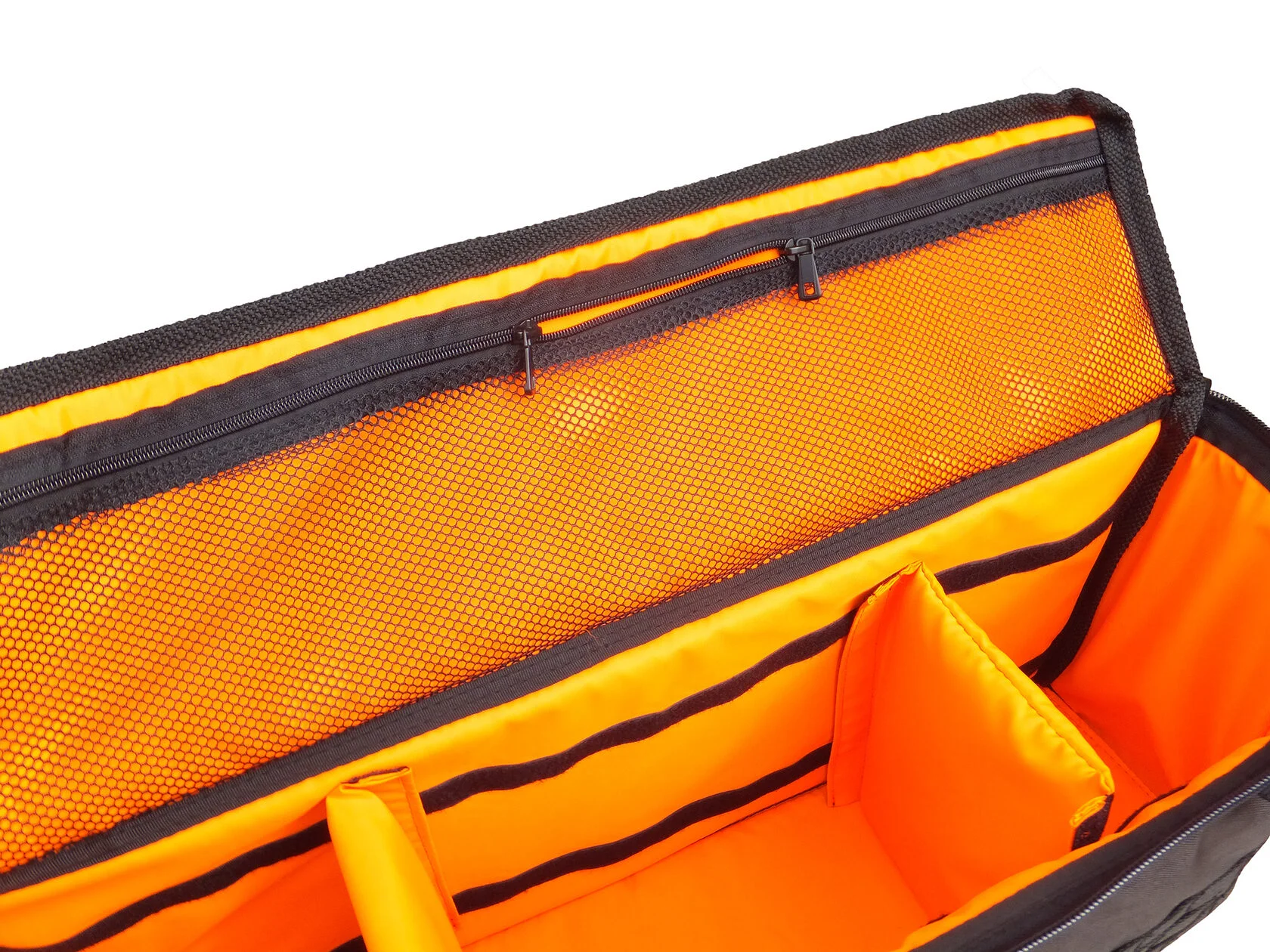 Сумка оснащена двома перегородками на липучках, що легко формують об’єм під різні завдання. Перегородки виконані не на всю висоту сумки, що дозволяє розміщувати і довгі речі також, наприклад, щітку для снігу.
