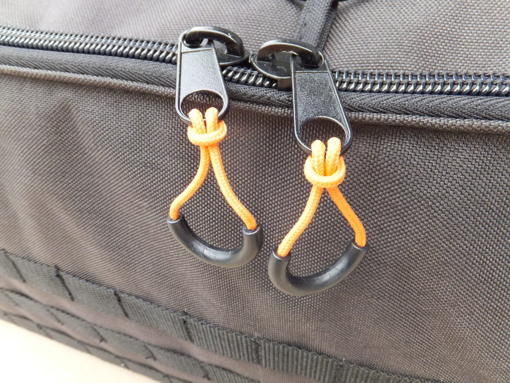Блискавка сумки велика, обладнана двома бігунками з великими пулерами, які дозволяють легко відкрити сумку навпомацки, навіть у рукавичках.