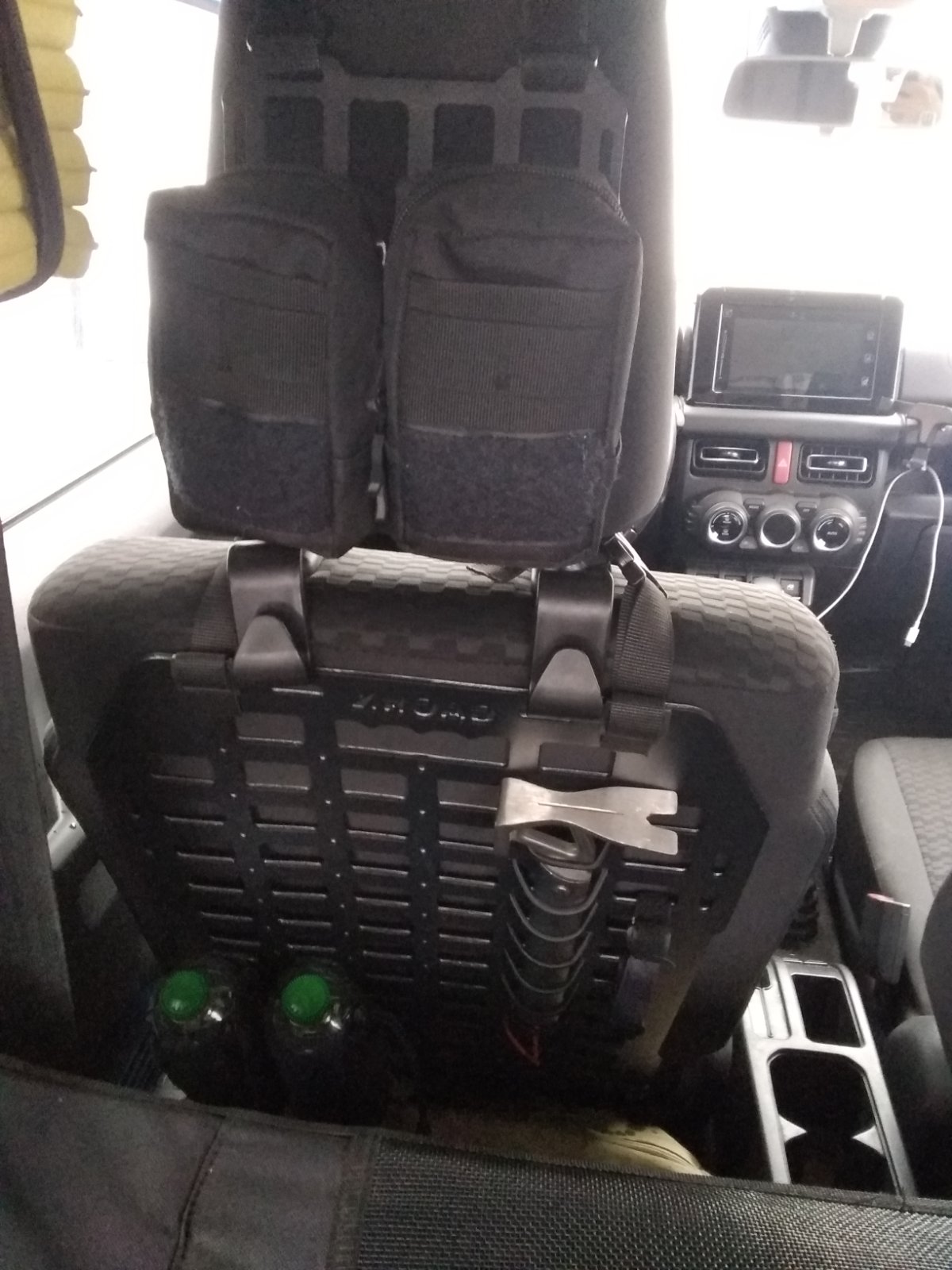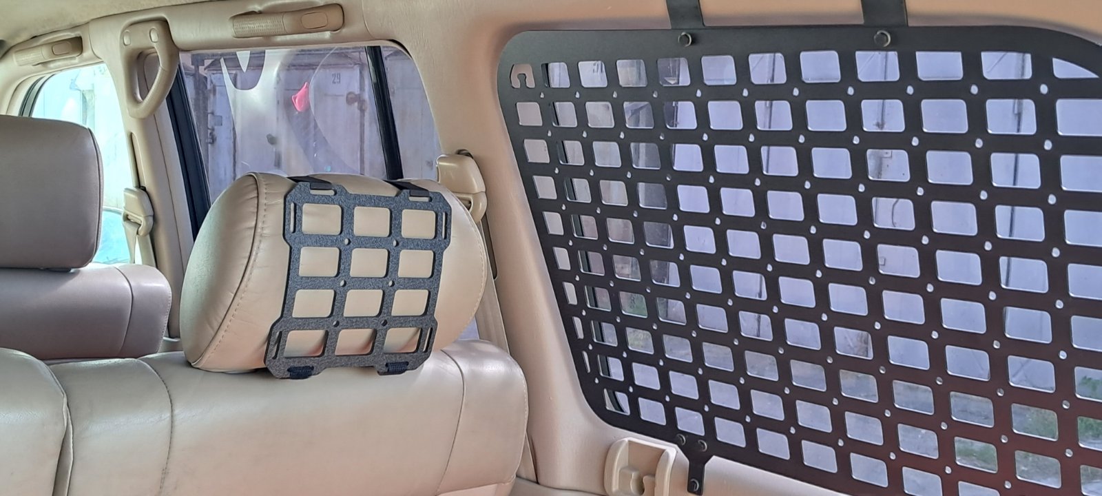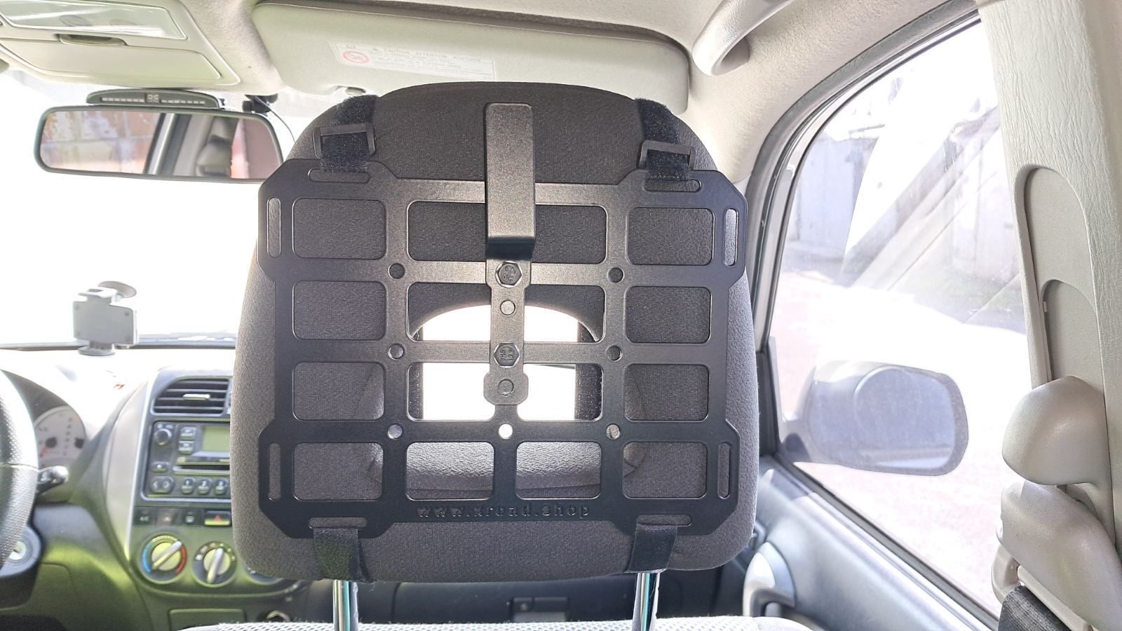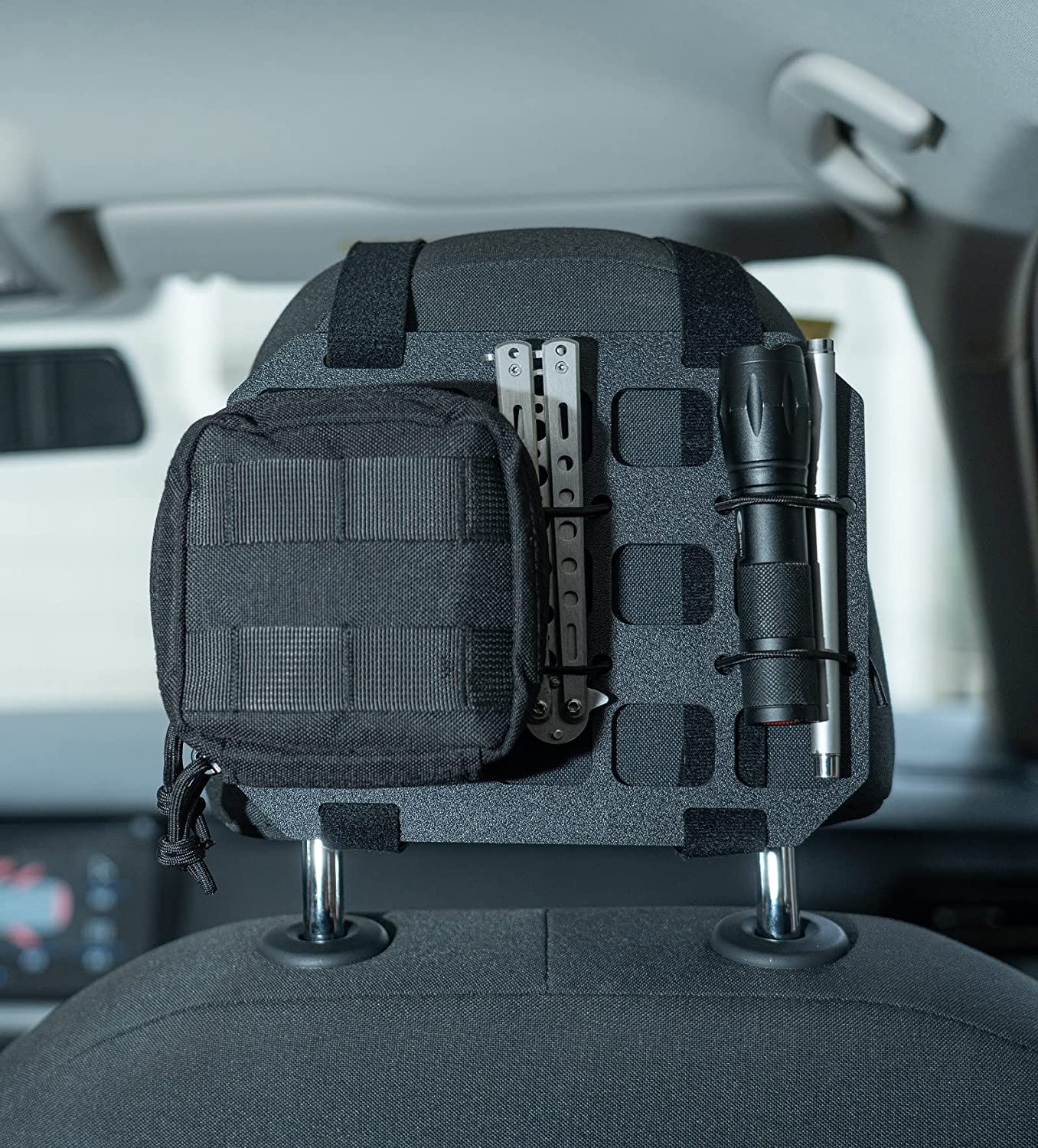 Молле платформа органайзер на підголівник автомобіля для швидкого доступу до аптечки, інструментів, зброї. Кріпиться швидкознімними велкро-хомутами. Панель жорстка, і на відміну від тканинних аналогів, не провисає під вагою спорядження. При необхідності панель за секунди відстібається разом із спорядженням.