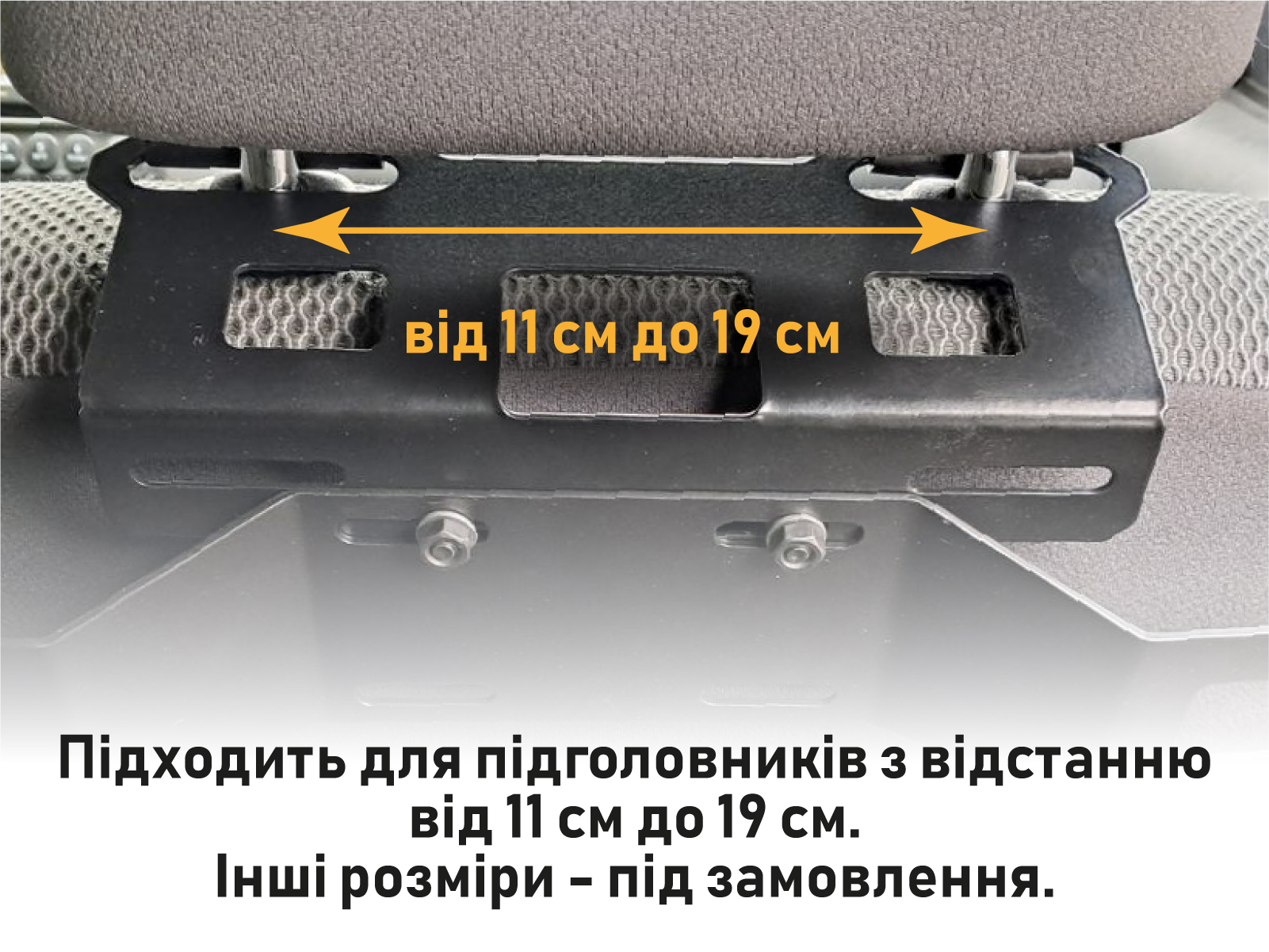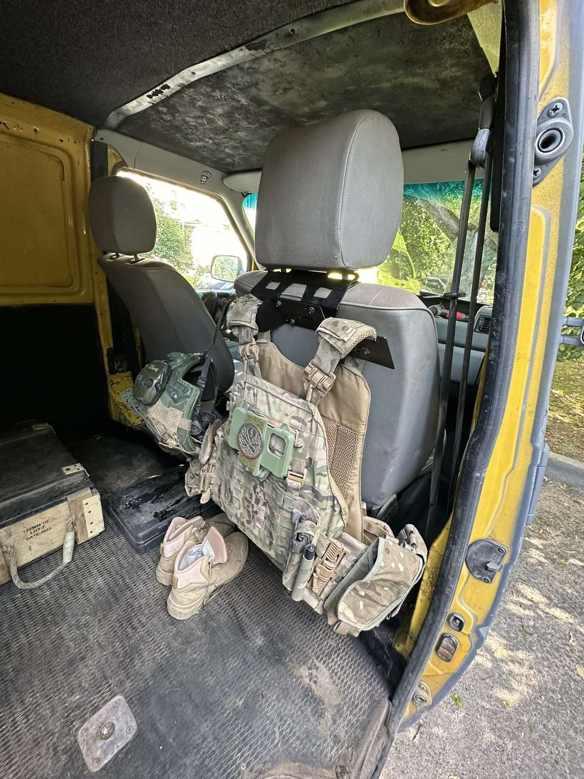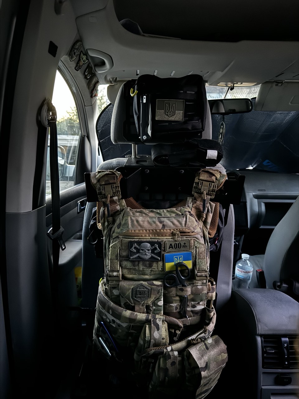Кріпиться до спинки сидіння швидкознімними ременями на фастекс. При необхідності панель за секунди відстібається разом із спорядженням. Передбачено монтаж через спейсери безпосередньо до обшивки автомобіля.