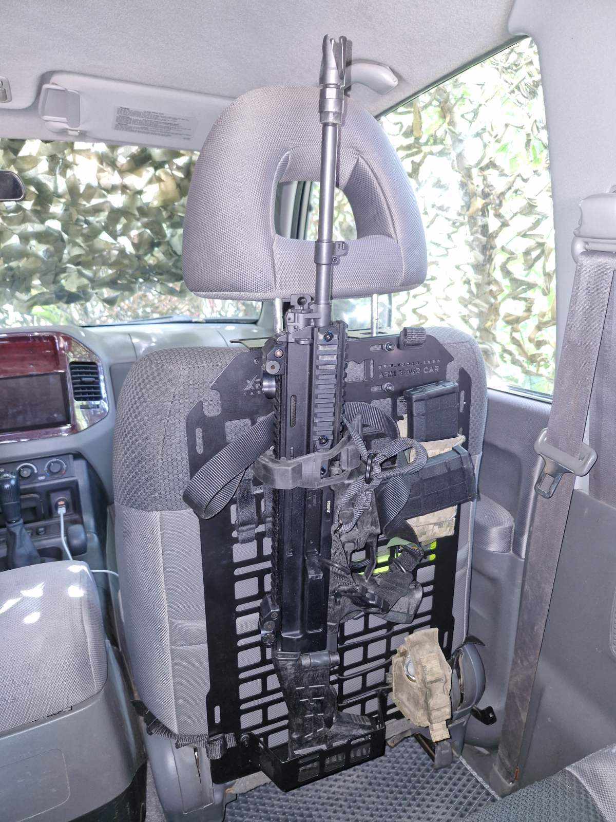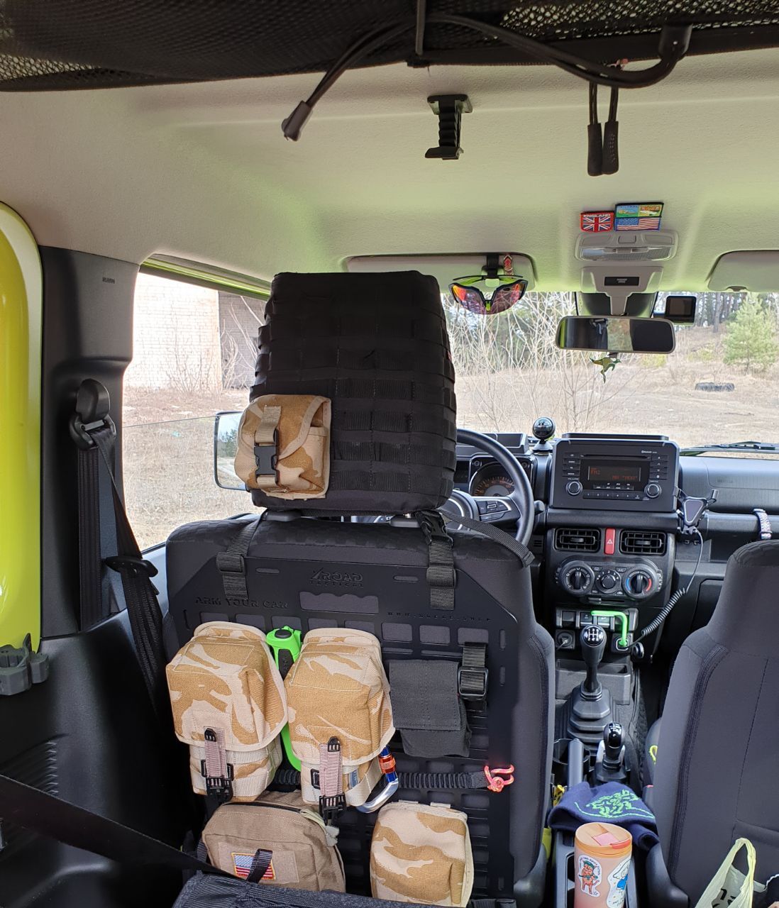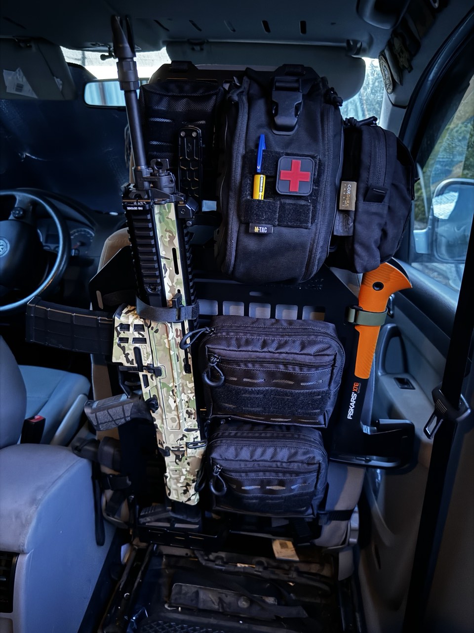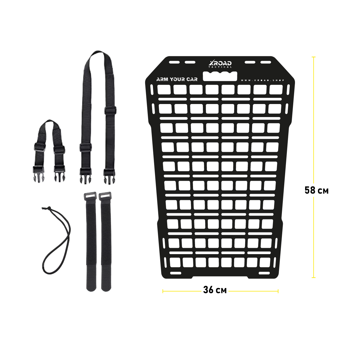 Універсальна тактична Молле панель на спинку сидіння для зручного розміщення EDC, зброї або інструментів в автомобілі. Також захищає від пошкодження саме спорядження та салон автомобіля.
