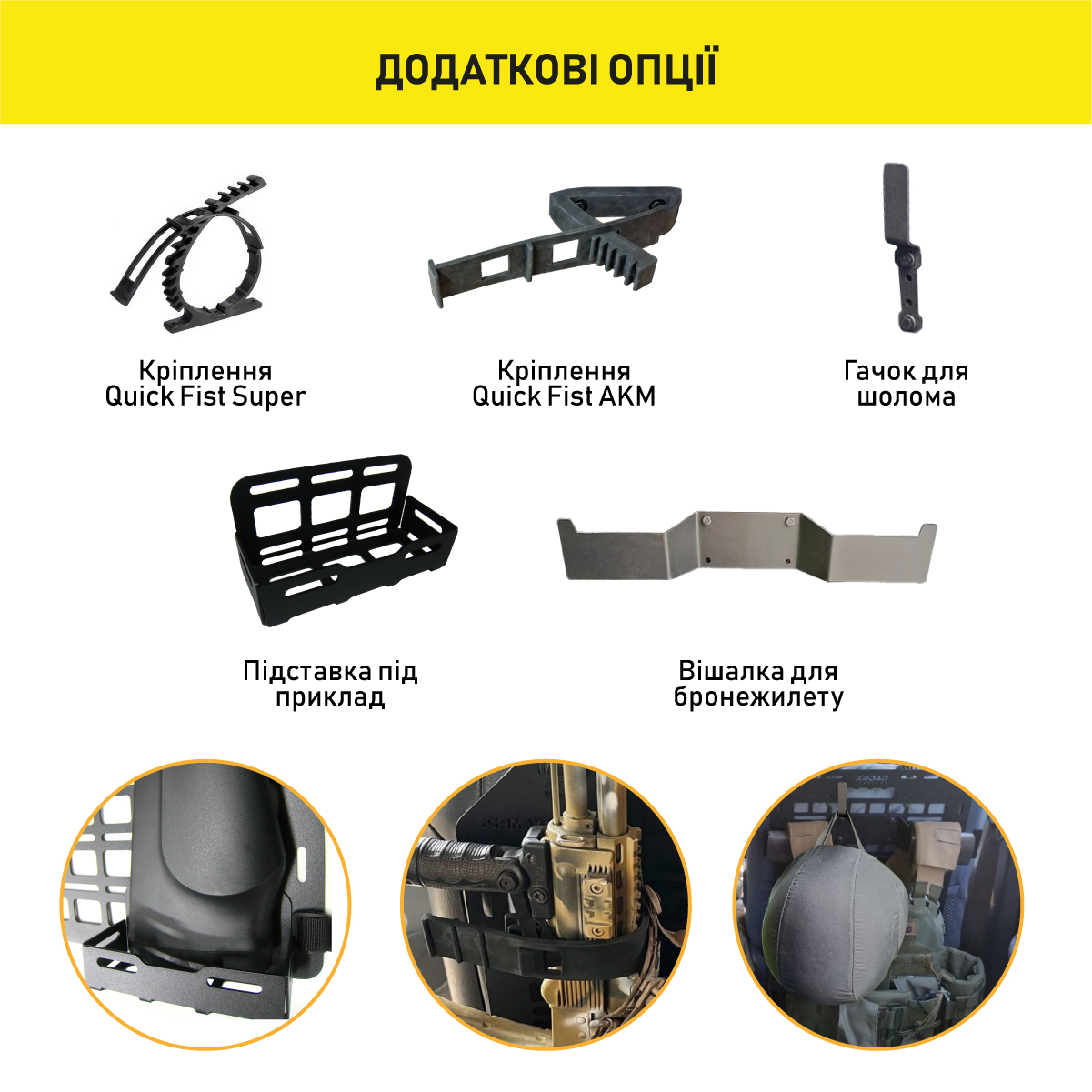 • Молле панель – універсальна, сумісна зі спинками сидінь всіх моделей автомобілів.